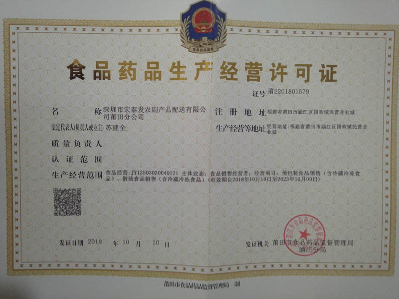 深圳市宏泰發農副產品配送有限公司莆田分公司 版權所有閩ICP備2020021265號